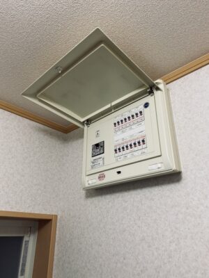 四日市市にお住まいのお客様から、「リビングの電気がつかない、分電盤のスイッチも上がらない」とご相談をいただきました。